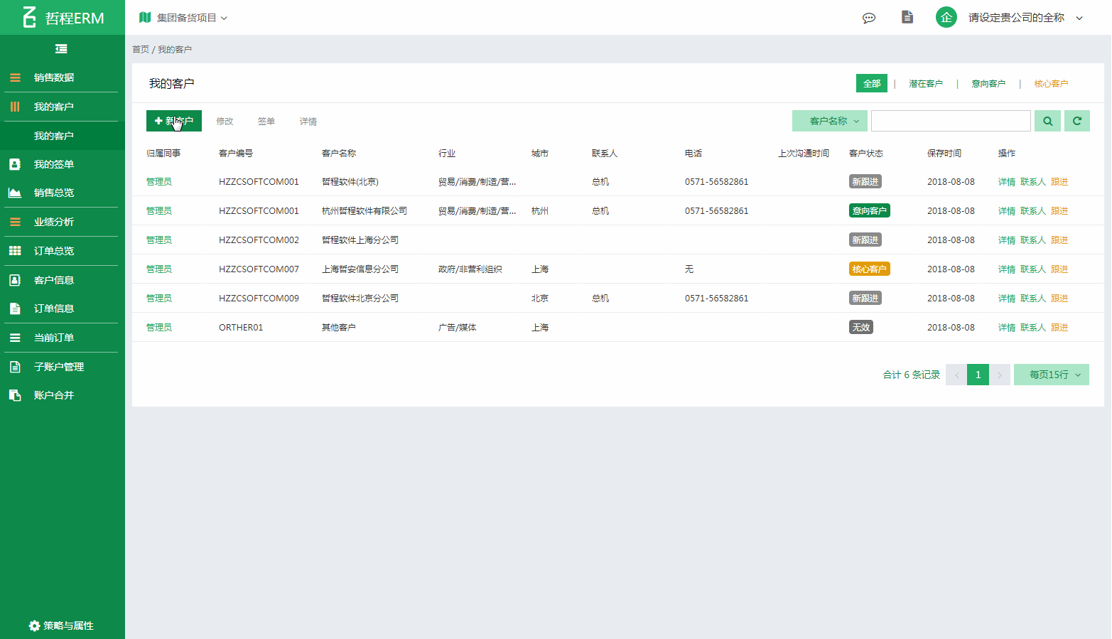 系统为使用者设计了简便的操作方式,不同使用者登陆只管理自己归属销售数据。管理员可查询全部客户信息,销售组长或部门经理可查询本人以及部门下属销售业绩数据,并可根据策略设定隐藏部分内容。公司领导或管理员登陆,可查询全部销售模块内销售数据,并可根据业绩目标人员等做客户统计分析
