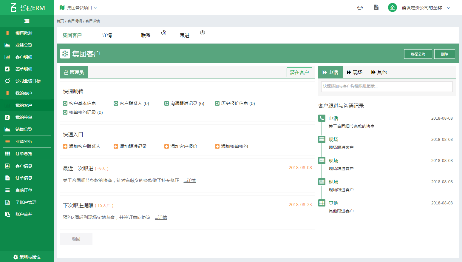 客户签单成功,通过系统一键操作签约签单信息,自动归入客户成交档案,并可支持应收款提醒和跟进操作