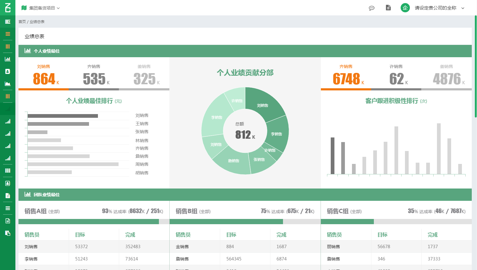 通过公司或者部门经理下达的业绩目标(精确到月份),可通过总览页面快捷查询每个月达成达成情况以及业绩增长